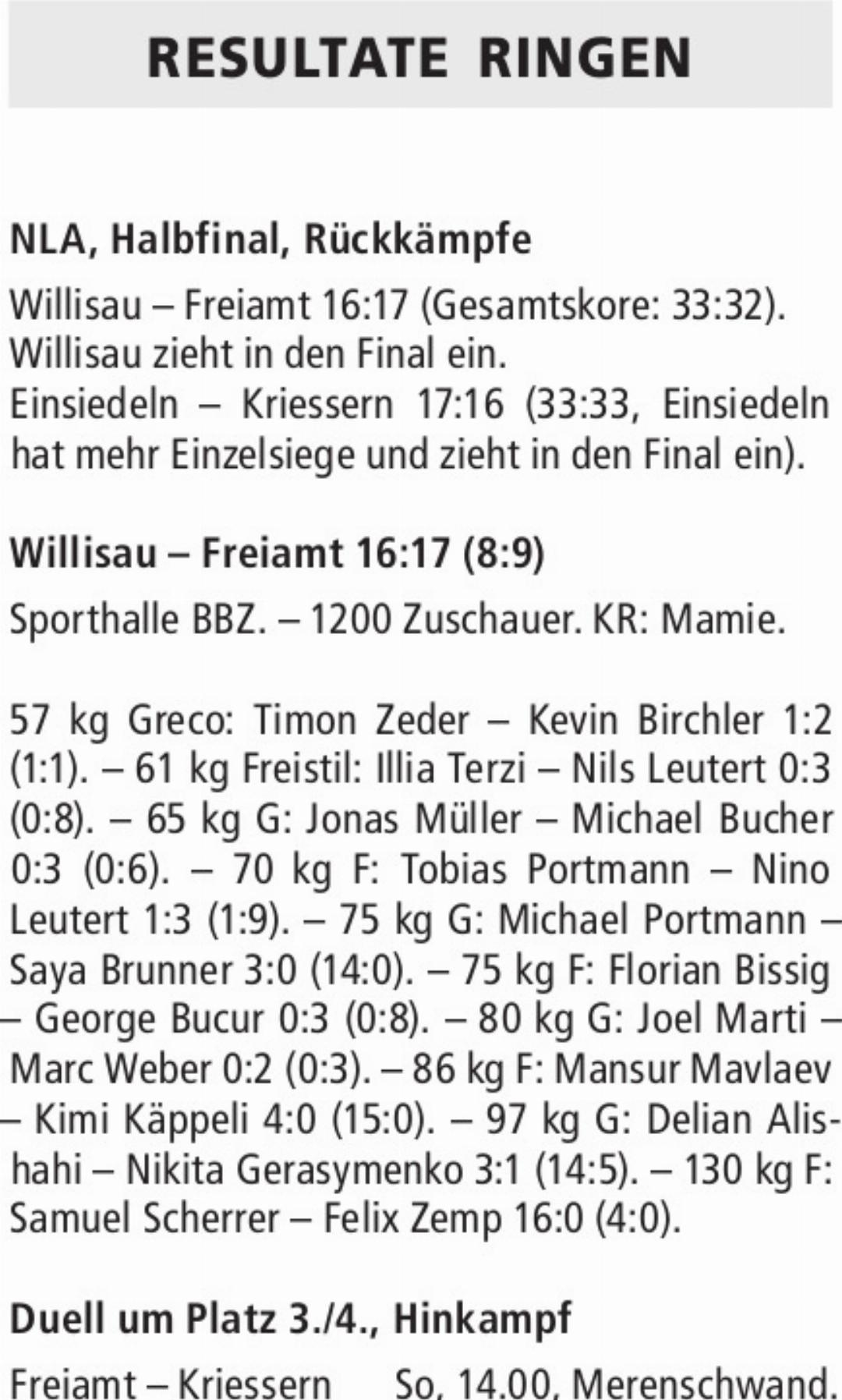 RESULTATE RINGEN