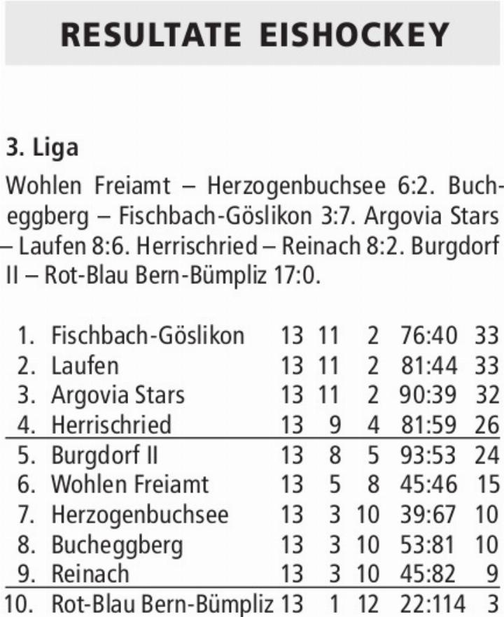 RESULTATE EISHOCKEY