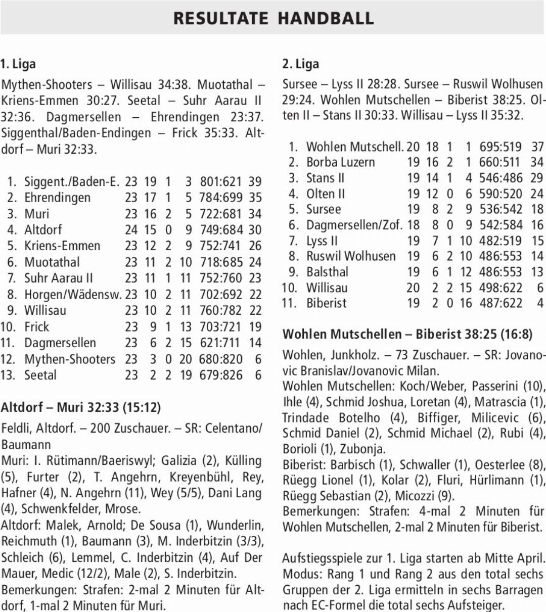 RESULTATE HANDBALL