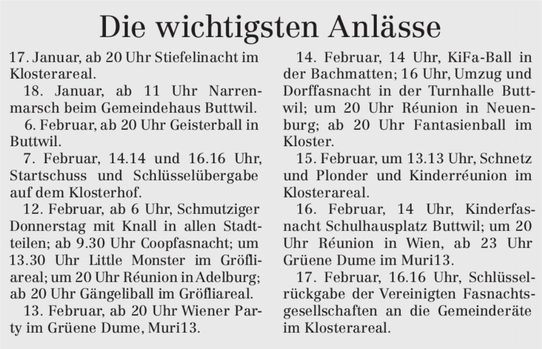 Vier Gesellschaften, vier Mottos, viele eigene, aber auch einige gemeinsame Anlässe. So sieht die Fasnacht in Muri und in Buttwil aus.