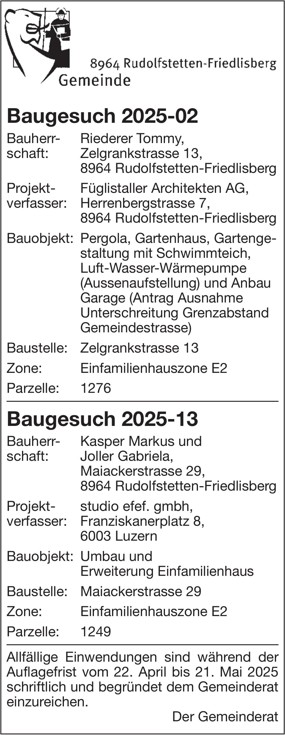 Amtliche Anzeigen