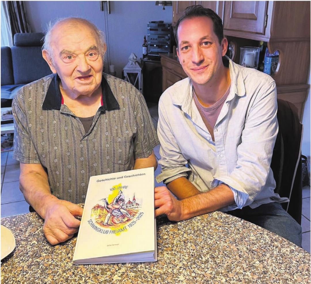 Der Abend war ein gelungenes Fest. Kurzweilige Reden, Ehrungen, Unterhaltung durch Komiker «Schösu» und Jodelgesang des «Echos vom Lindenberg». Dazu ein feines Bankett. Als Krönung wurde das Buch zum Jubiläum vorgestellt, quasi die Vernissage des Werks mit dem Titel «100 Jahre SK Freiamt. Geschichte und Geschichten». Autor des Buchs ist Sportjournalist Stefan Sprenger. Er gab Einblicke in das 280-seitige Werk und die Entstehung (mehr zum Buch in der separaten Berichterstattung in dieser Ausgabe). Er habe im Laufe des Projekts «die Freiämter Schwingerwelt» immer besser kennen- und schätzen gelernt. «Der SK Freiamt ist ein richtig starker Verein, der schöne Werte pflegt und ehrt», so sein Fazit. An jenem Abend durften die Gäste ein Buch mit nach Hause nehmen. Das allererste Exemplar aber brachte Sprenger am Tag vor dem Jubiläum persönlich bei Urs Meyer vorbei. Meyer wurde 1972 der erste Freiämter Eidgenosse der Geschichte. Aus gesundheitlichen Gründen konnte der über 80-Jährige aus Villmergen selbst nicht am Abend dabei sein, «doch ich wusste, wie sehr er sich auf die Geschichten in diesem Buch freute. So brachte ich es ihm gerne vorbei. Es war ein sehr emotionales Treffen. Und ich spürte, wie riesig er sich freute. Und das wiederum freute mich.»