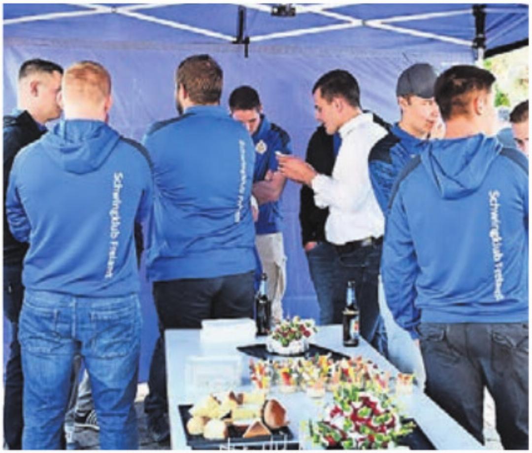 Der SK Freiamt feierte seinen runden Geburtstag. Für Präsident Marco Küng ist klar: «Schwingen findet nicht nur im Sägemehl statt, sondern auch ausserhalb des Rings.» Dies widerspiegelt sich auch am Apéro der Jubiläumsfeier, auf dem Schulhausplatz in Aristau geht es beinahe wie bei einem Familienfest zu und her. Jung und Alt ist im Gespräch. Da wird gelacht und sich freundschaftlich auf die Schulter geklopft. Viele strahlende Gesichter – darunter einige bekannte Persönlichkeiten des Schwingsports – genossen die Atmosphäre.