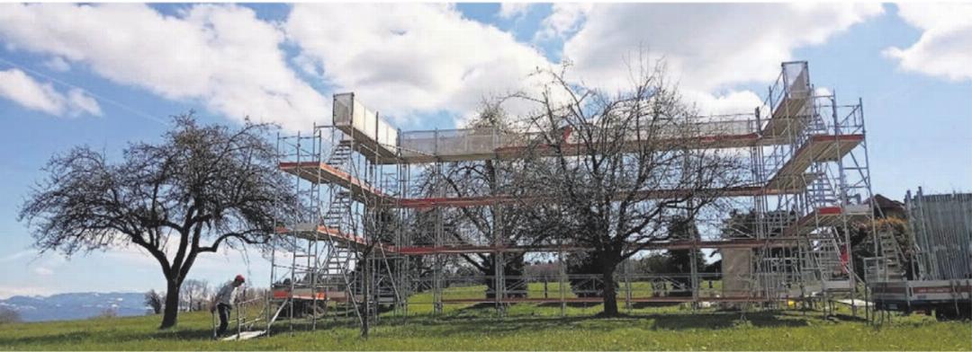 Bereits aufgestellt ist der Baumkronenpfad im Ausser Greuel. Am Ostersamstag haben ein halbes Dutzend Gerüstbauer einen Apfelbaum eingerüstet. Der Verantwortliche, Matthias Arnold, zeigt sich zufrieden und freut sich auf die Besuchenden. «Wir haben den Pfad so angelegt, dass drei Bäume aus der Vogelperspektive betrachtet werden können.» Einer davon ist ein uralter Birnbaum, dessen Blüten sich bereits im Ballonstadium befinden. Die Aussicht vom Baumkronenpfad über die Baumkronen in Richtung Muri oder auch zu den Bergen der Innerschweiz ist grossartig oder wie er es ausdrückt «eifach nome schön». Er betont aber gleichzeitig, dass der Baumkronenpfad nur während den Öffnungszeiten von «Muri blüht» betreten werden darf und er dann von einer Aufsichtsperson betreut wird. Überhaupt sind die Organisatoren auf die Disziplin der Besuchenden angewiesen. So wird ausdrücklich darauf hingewiesen, dass man auf den markierten Wegen bleiben soll und keine wilden Erkundungstouren über Wiesen und Weiden geduldet werden.