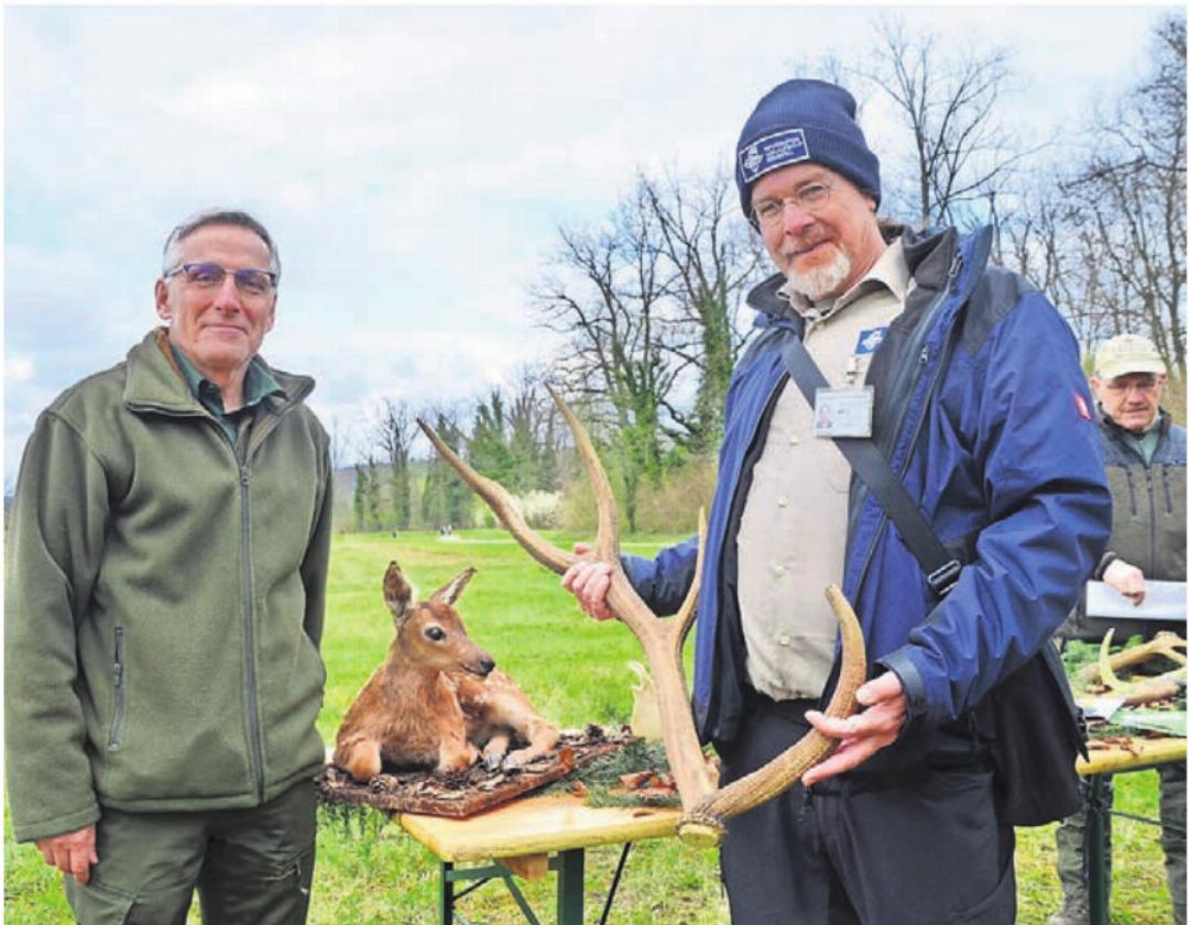 Der Einsatz für die Wildtiere verbindet sie, den Jäger des Reviers Bünzen-Rottenschwil und den Biologen der Stiftung Reusstal. gemeinsam empfingen Adrian Seiler und Niklaus Peyer zum Informationsanlass über den Rothirsch.