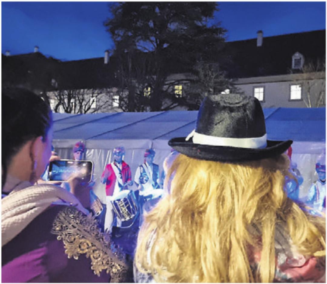 Die «Adelburger» sind das stärkste Tambouren-Corps in Muri. Nicht nur weil sie eine starke Jugendabteilung aufgebaut haben. Mit der Fertigkeit, mit der sie ihre Stücke spielen, begeistern sie immer wieder. Sie, die im Kostüm der «Scheichs» unterwegs sind, haben auch in diesem Jahr schlagkräftig mitgeholfen, das Dorf in die fünfte Jahreszeit zu wecken. Mit dem Eintreffen aller «Morgenstreich-Züge» spielten sie auf dem Klosterhof weitere Stücke. Musik, Lichtshow und die Rhythmen führen dazu, dass scharenweise die Handys gezückt werden und Videos entstehen. Mit dem Verstummen der Klänge heisst es auch für die Adelburger, sich wärmen an einem Kafi mit Schuss. Doch dies ist erst der Auftakt in einen prall gefüllten Schmutzigen Donnerstag.