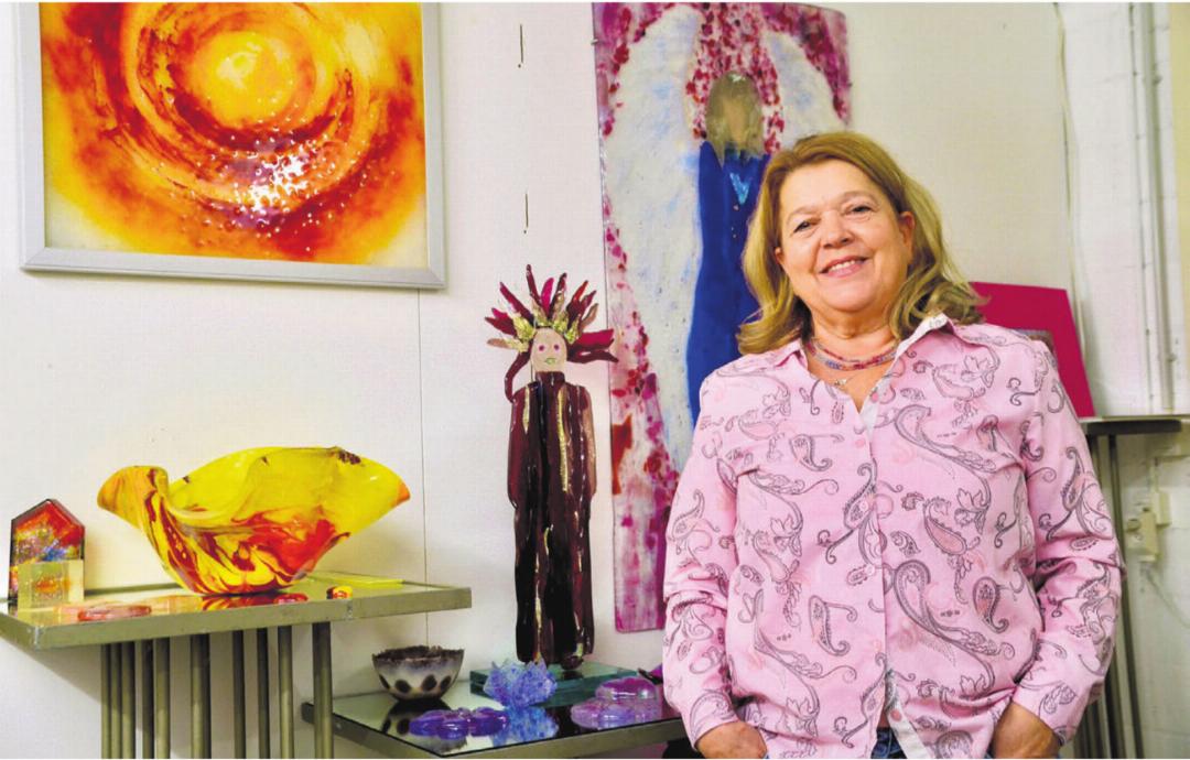 Kräftige Farbkombinationen – oft Ton in Ton – und leuchtende Durchsichtigkeit prägen die Glasobjekte aus dem Atelier der Unterlunkhoferin. Frisch pensioniert, geniesst sie es, in ihrem Kunstschaffen voll aufzugehen und immer wieder Neues auszuprobieren. Hat sie eine Idee, kann sie diese nun gleich umsetzen. Schneiden und sägen, kämmen, bohren und schleifen, mehrschichtig gestalten, matt und mit Glanz.